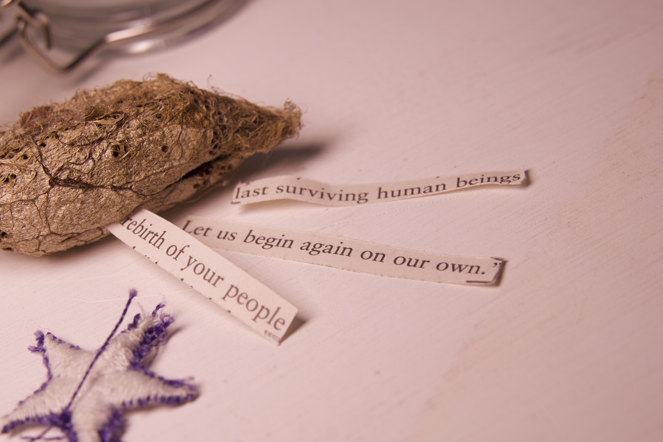 The use of collage as a methodology came from marking books with useful quotations, then from an admission to myself that I could destroy the books and repurpose them to create new narratives. This way I could burn through the untouched books on my shelf and create something of value – draw out the knowledge physically, again as an act of excavation. In time, I also tore apart the books that had the greatest influence on my research and work, their vandalism being a form of love.